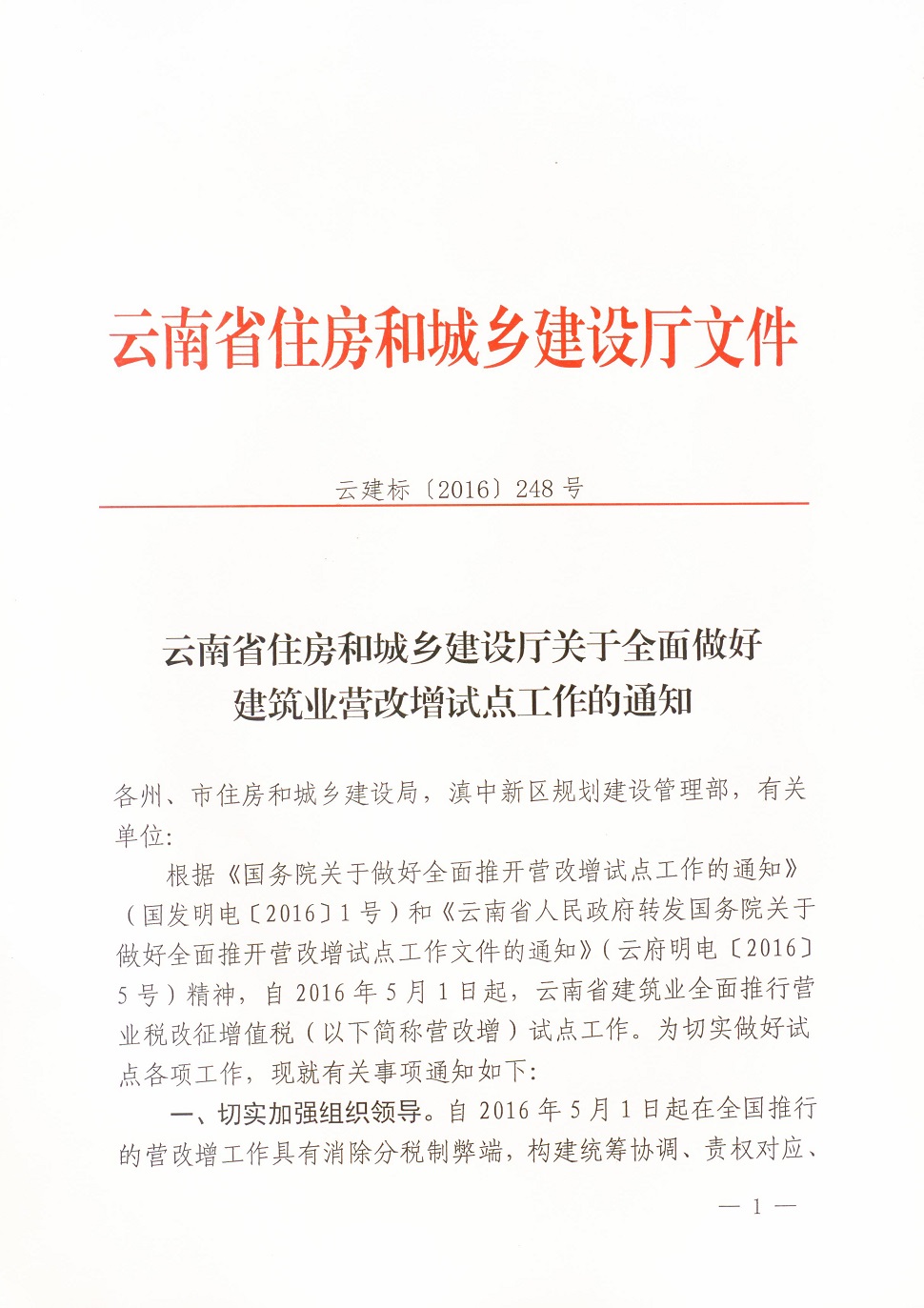 關(guān)于全面做好建筑業(yè)營改增試點工作的通知 云建標(biāo)[2016]248號