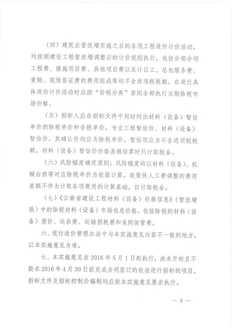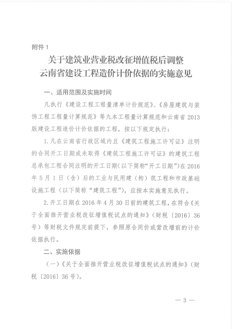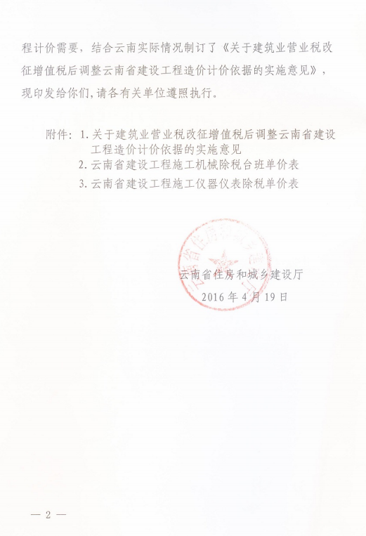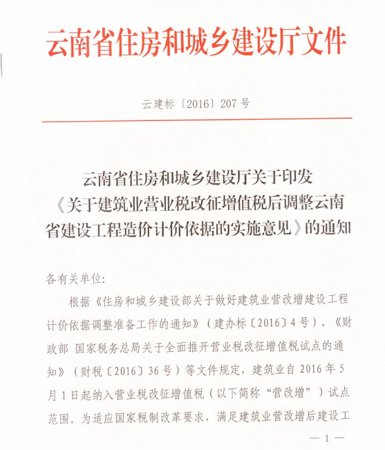 關(guān)于建筑業(yè)營業(yè)稅改征增值稅后調(diào)整云南省建設(shè)工程造價計價依據(jù)的實施意見的通知 云建標[2016]207號