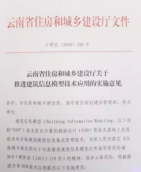 關(guān)于推進建筑信息模型技術(shù)應(yīng)用的實施意見 云建設(shè)[2016]298號