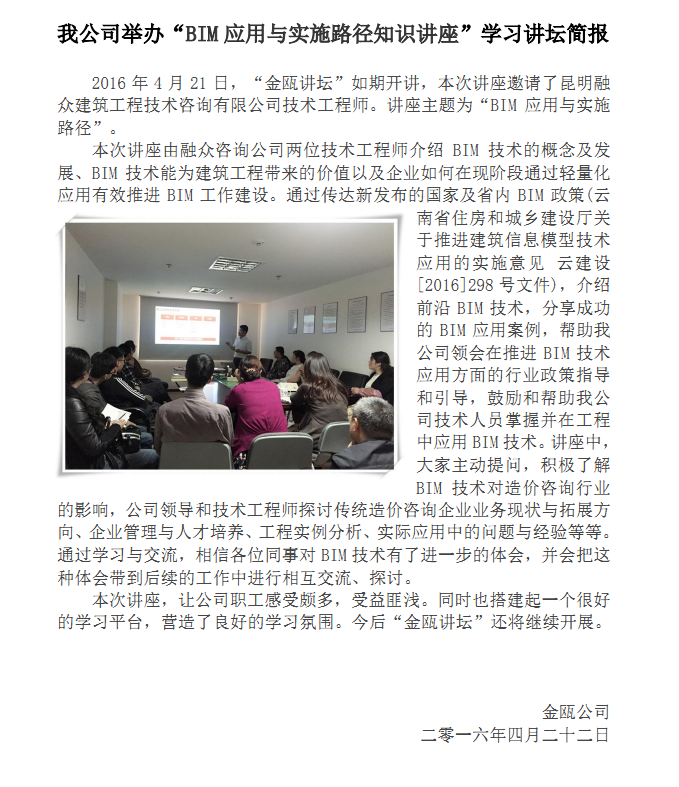 我公司舉辦“BIM應(yīng)用與實施路徑知識講座”學(xué)習(xí)講壇簡報