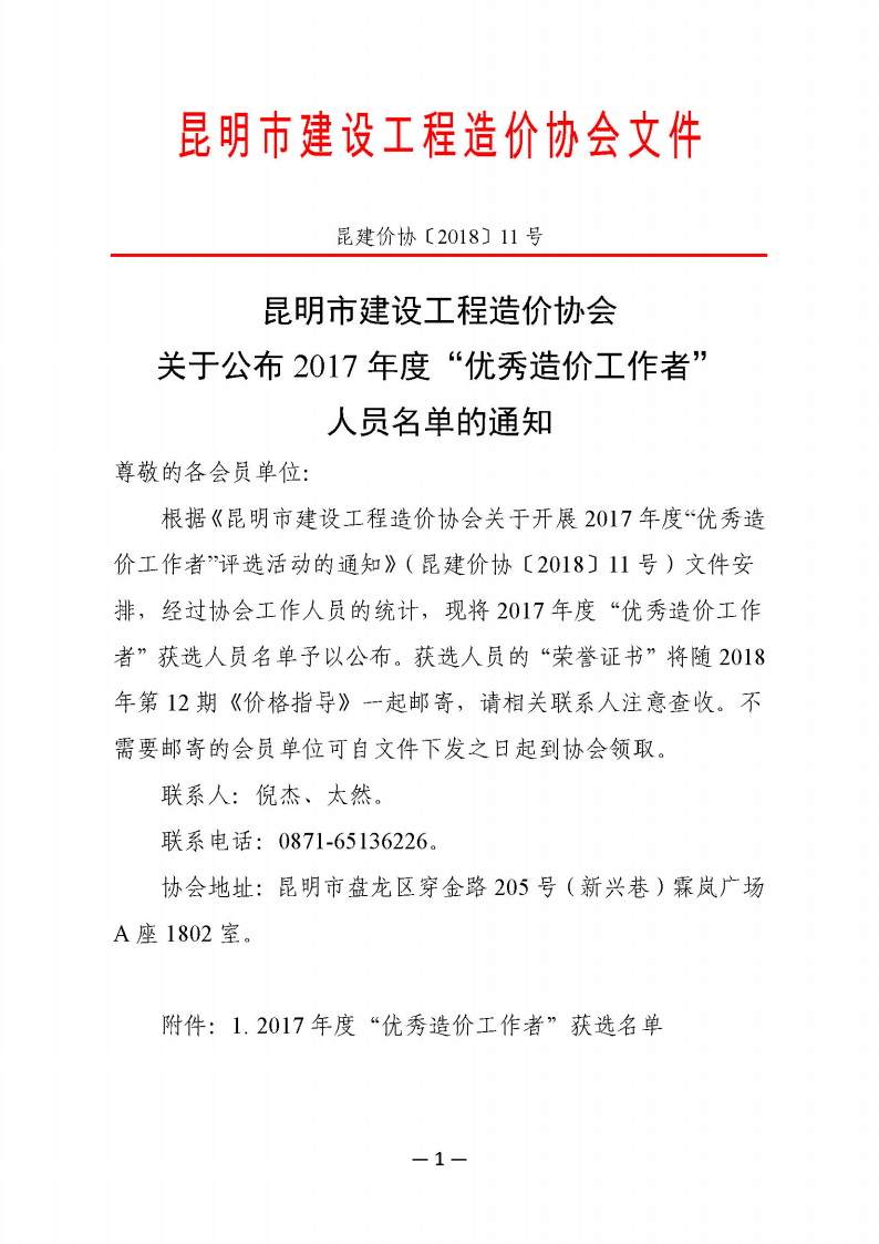 祝賀王紹鑫同志榮獲2017年度“優(yōu)秀造價工作者”