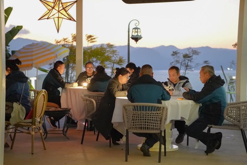 頒獎完成后,就到了年會的放松時刻,公司隨后舉辦了近幾年盛行的棋牌類游戲,雙扣、摜蛋比賽,在背靠撫仙湖,抬頭即無垠的天空這樣的美景下一齊用了晚宴,最后也到了自由活動時間,年會的第一天悄悄拉下了帷幕。