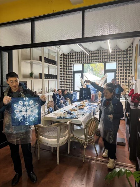 第二天一早的晨間活動以少數(shù)民族的扎染活動開啟,在老師的悉心指導(dǎo)下,“同學(xué)”們都陸續(xù)完成了自己的作品,在將成品裝袋的時候大家小心折疊、放置,嘴角露出滿意的微笑,或許這就是通過自己的雙手努力而來‘成果’的價值吧。某一同事經(jīng)過時,聽到一句小聲的嘀咕“我要把它送給我的寶寶”,是呀,除了是同事,是員工,他們可能還是心系家庭的爸爸媽媽,是想把最寶貴的物品送給心里最疼愛的人的社會角色吧。