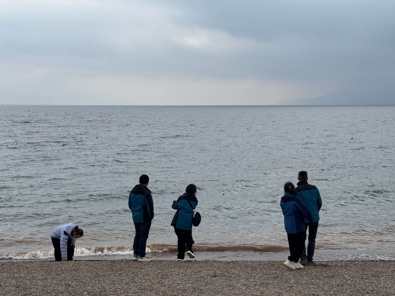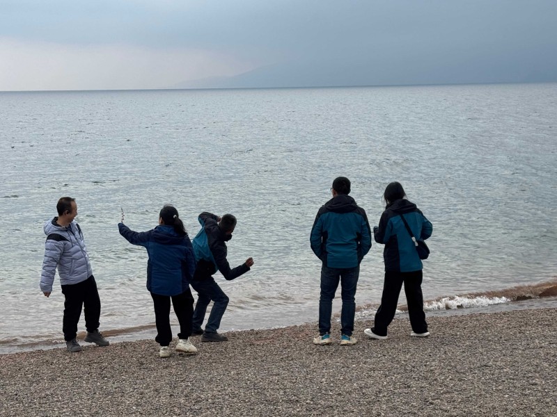 徒步至紅沙灘的時候大家又變成了孩子在嬉戲打鬧,在湖邊看到石子變撿起來打水漂,亦或者互相幫襯著拍照打卡,潛移默化中同事關(guān)系漸變成了朋友關(guān)系。