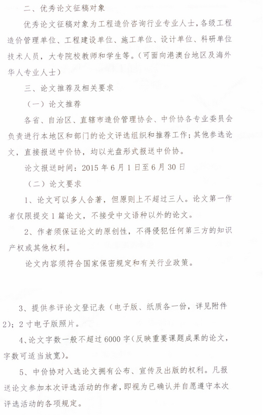中國建設(shè)工程造價管理協(xié)會關(guān)于開展第六屆工程造價優(yōu)秀論文評選活動的通知
