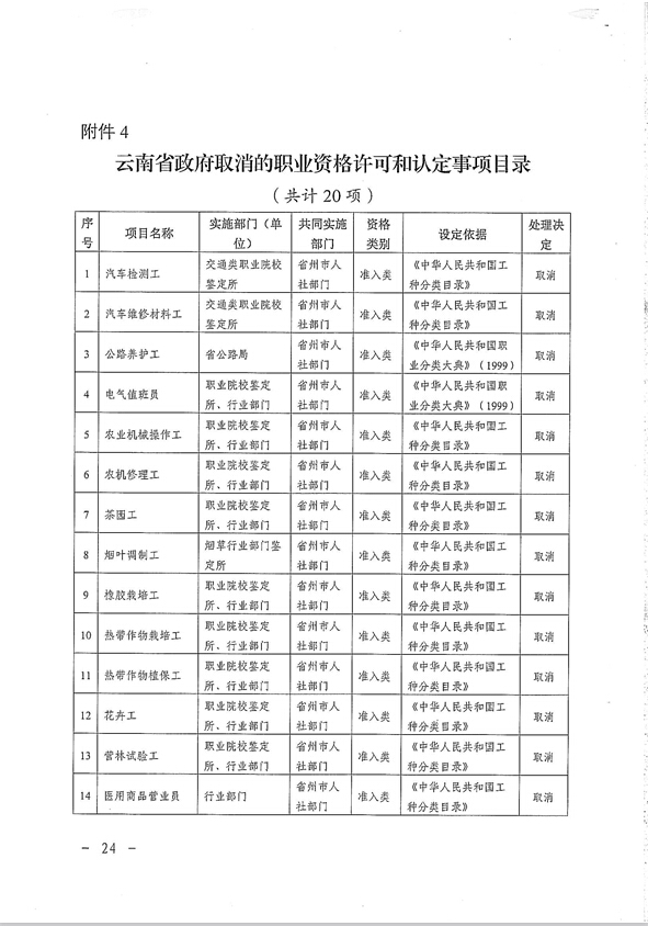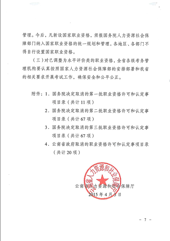 省人力資源和社會(huì)保障廳關(guān)于貫徹落實(shí)國務(wù)院云南省政府取消職業(yè)資格許可和認(rèn)定有關(guān)事項(xiàng)的通知